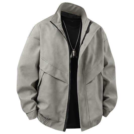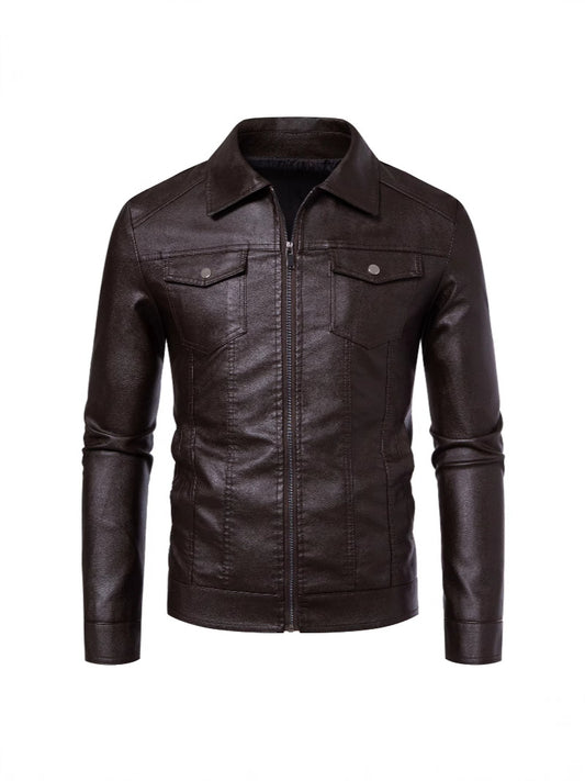 American-style retro spring/autumn long-sleeved leather jacket with collar