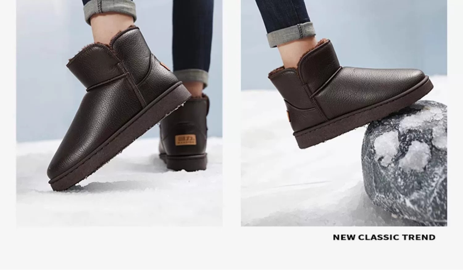 Waterproof: Integrated leather and fur design for protection against moisture.