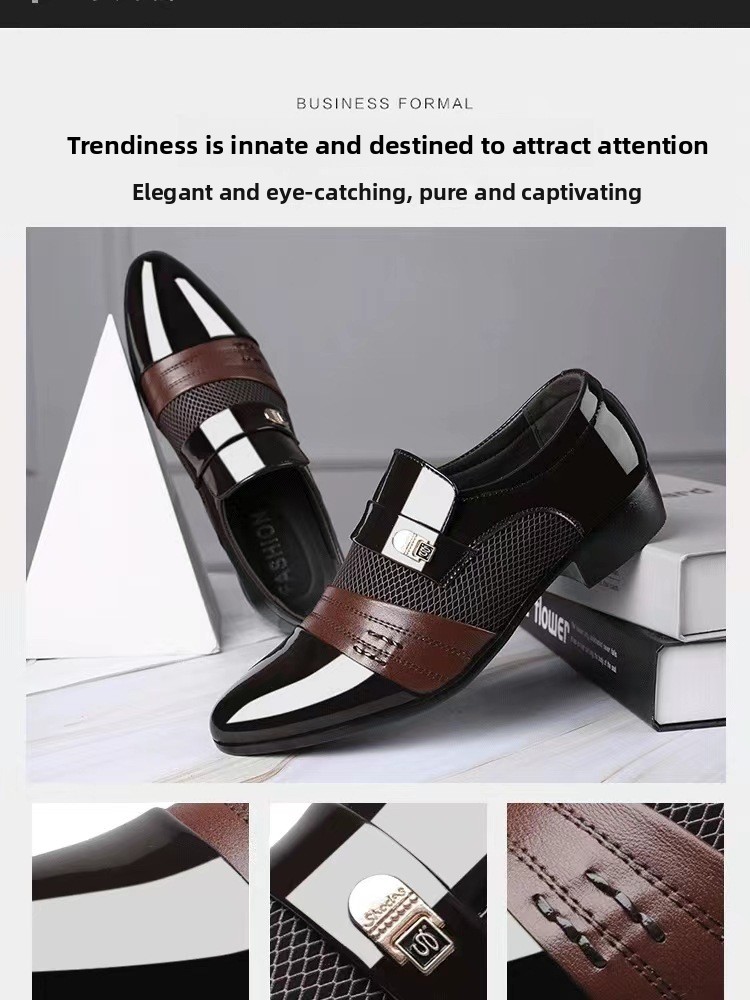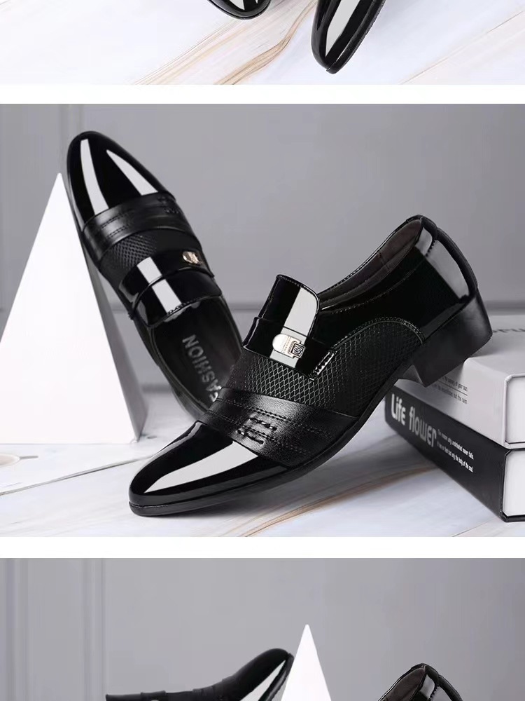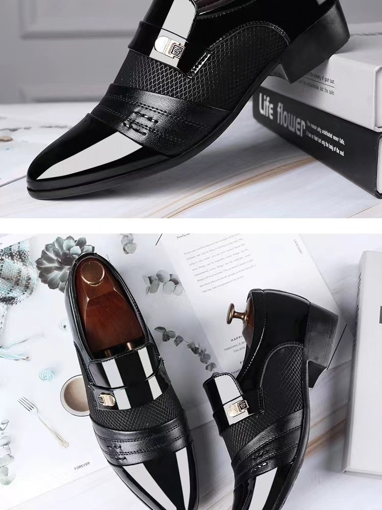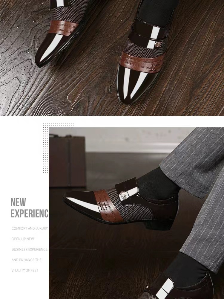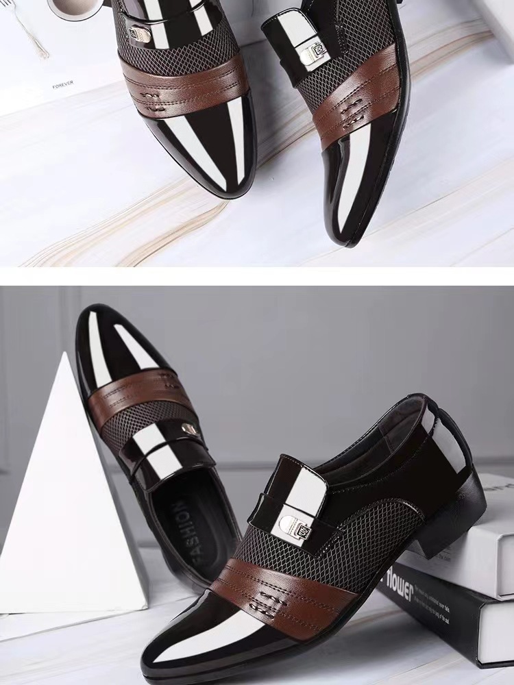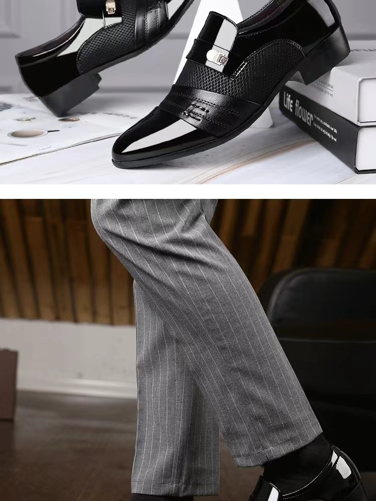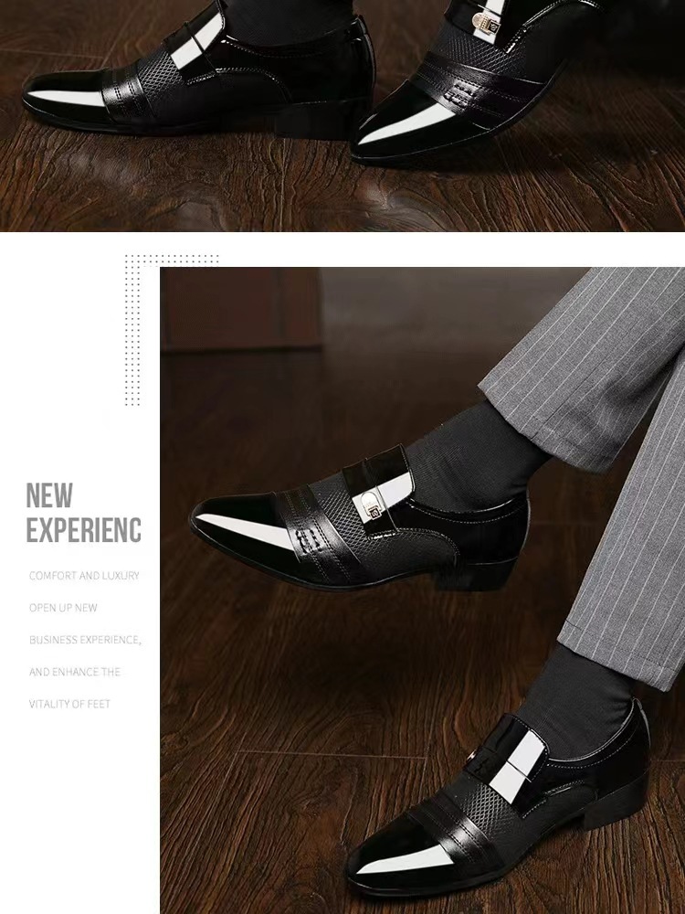 Glossy Leather Finish: High-shine PU leather upper for a sleek and professional look.