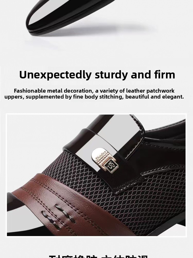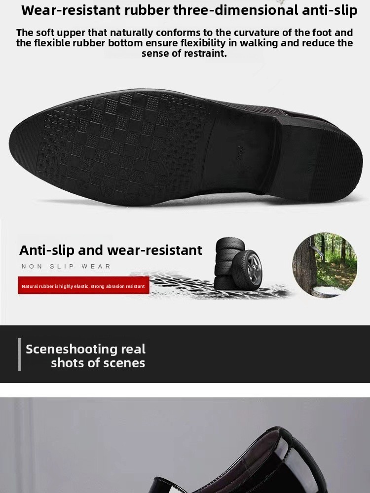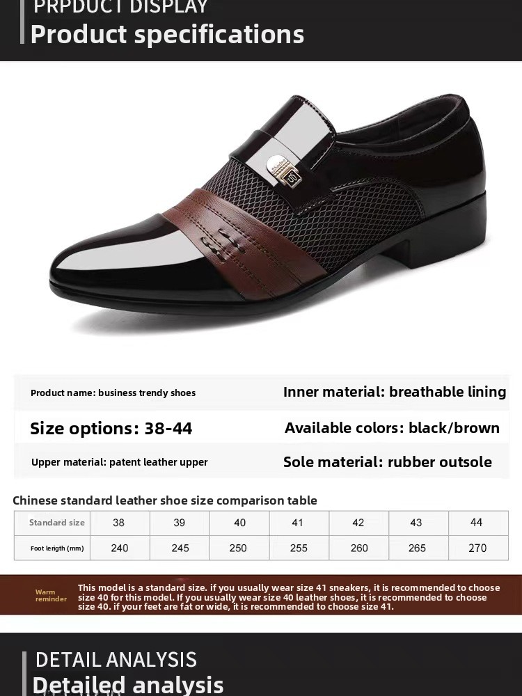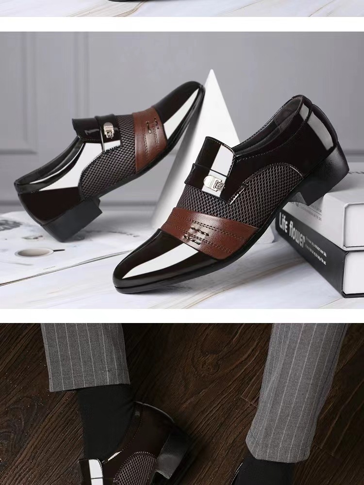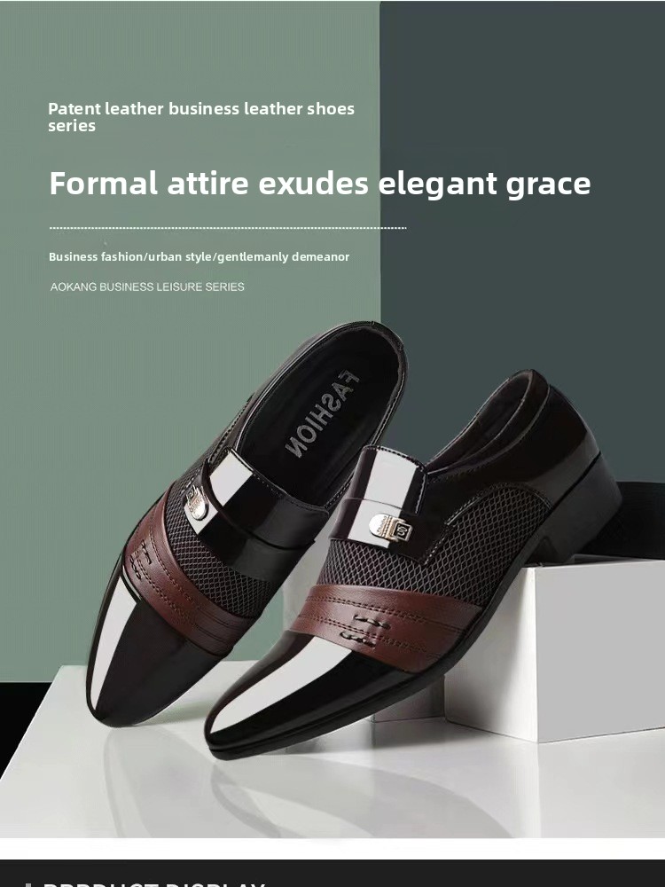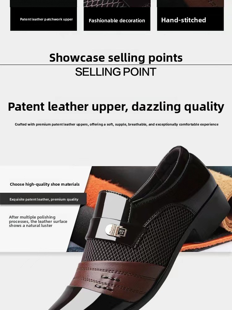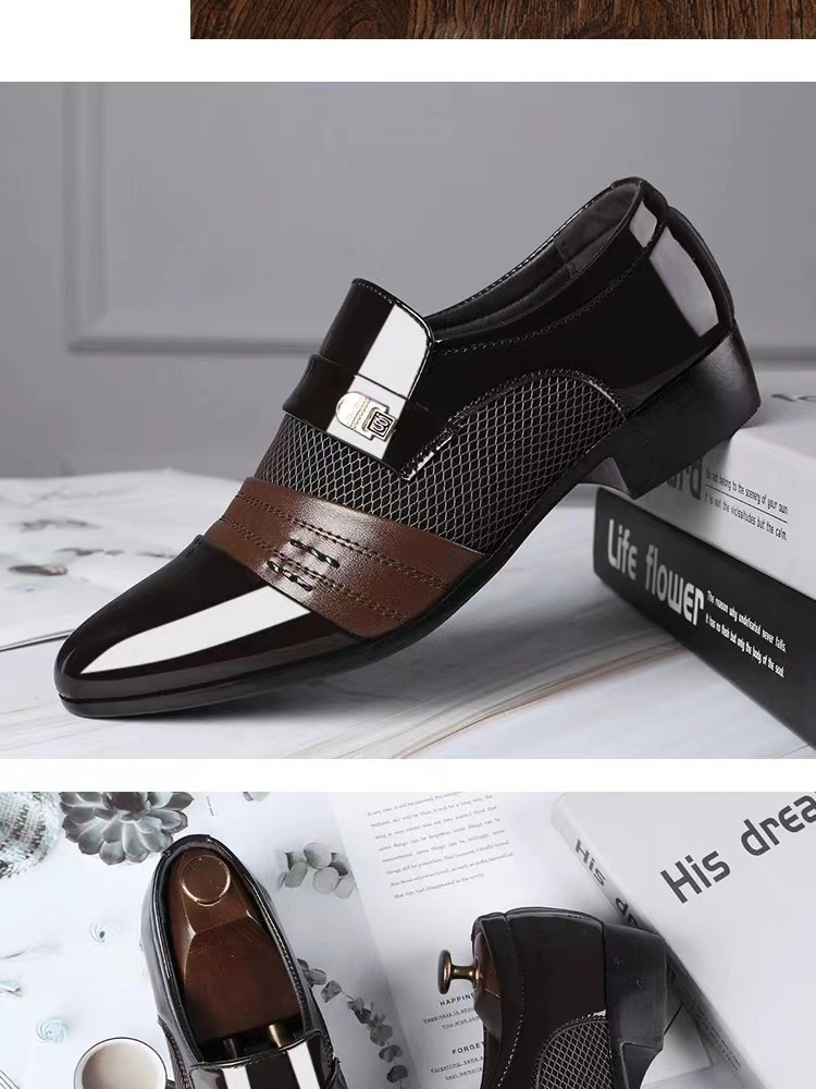 Glossy Leather Finish: High-shine PU leather upper for a sleek and professional look.